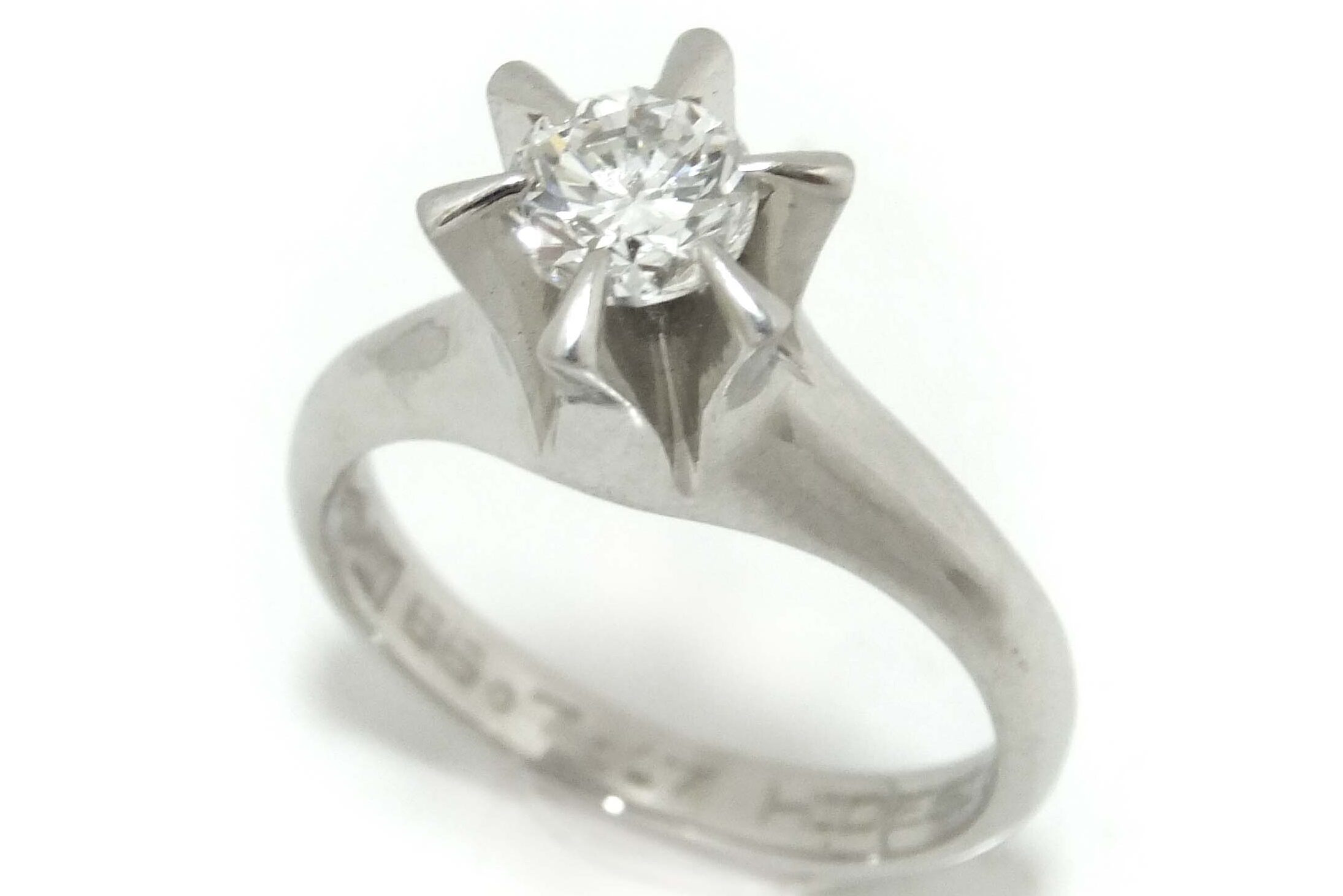 主人よりいただいたエンゲージリング、型が古くなったので、今の引っ掛かりのないデザインにリフォームして頂きました。大切に使います。